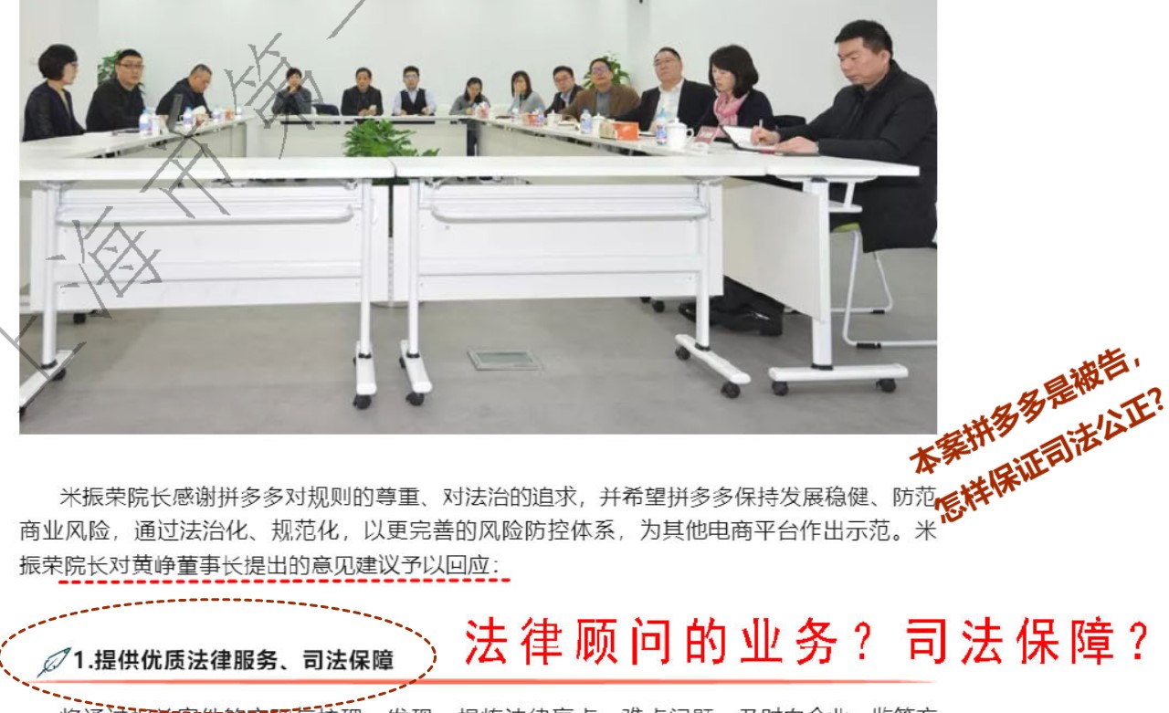 ……米振荣院长对黄峥董事长……予以回应:1.提供优质法律服务司法保障2.对互联网平台法治化难点问题予以研讨。||| 像不像法律顾问?