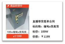 《判决书》第8-10页,本院认定事实如下:……“直播间右下角商品图片下方有文字描述:商品秒拼中,100w缅甸a货高货…¥1199”,
