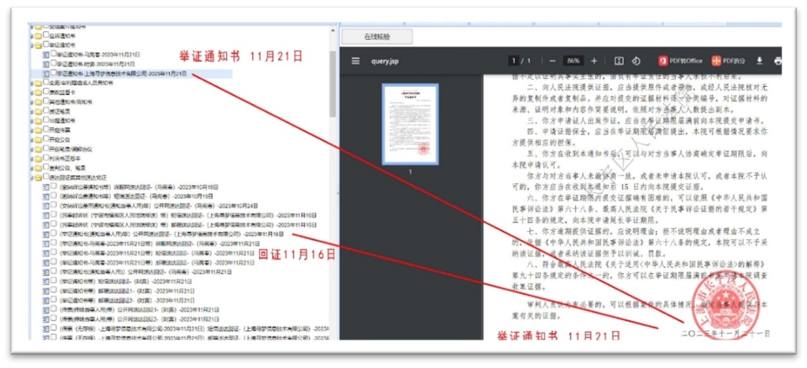 8. 其它违法违纪情况 (1)邓鑫法官故意拖延办案:违反法定期限,判决书迟延3天发送。 《民事诉讼法》第一百五十一条 第二款 当庭宣判的,应当在十日内发送判决书;定期宣判的,宣判后立即发给判决书。 邓鑫法官故意拖延办案:违反法定期限,判决书迟延3天发送。违法。 【处分参考】 《人民法院工作人员处分条例》第四十七条故意违反规定拖延办案的,…… (2)邓鑫法官提前报信给被告拼多多以使其提前处理状况。 【事实】提前5天发送举证通知给拼多多?偏袒无底线。 证据2:《笔录3》第8页, 拼多多自认:被2代:……2023-11-17被告2收到长宁法院发送的诉讼材料第二天,…… 邓鑫违反《法官法》第四十六条(七)利用职权为自己或者他人谋取私利的;